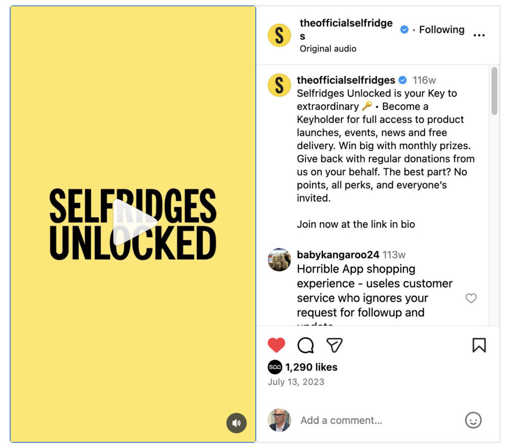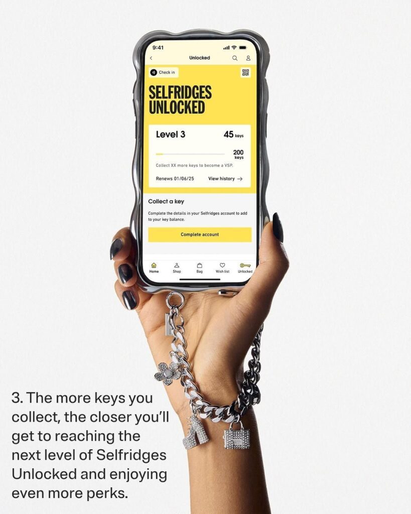 הדוגמה הבולטת ביותר היא Selfridges Unlocked, תוכנית הנאמנות החדשה של בית הכלבו היוקרתי בלונדון. התוכנית היא חינמית להצטרפות, אך לא מסתכמת ברכישה: משתמשים מרוויחים “מפתחות” (“Keys”) גם על זמן שהייה בחנות, שיש אינטראקציות מסוימות כמו אכילה במסעדה, שימוש בשירותי קונסיירז’ או השתתפות בחוויות מיוחדות. ברגע שנצברים מעל 200 “Keys” — מגיעים לדרגה “Very Selfridges Person”, שכוללת חניה חינם, שינויים לבגדים, חוויות מותאמות אישית גישה ללובי בלעדי ועוד. זהו מודל שמרחיב את התחום של נאמנות מעבר לקנייה פיזית גרידא.
