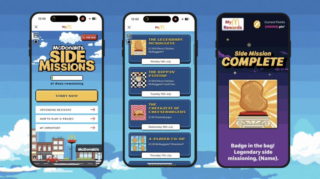 מודלים דומים מופיעים גם במותגים רחבי טווח. בבריטניה, מקדונלד'ס השיקה קמפיין בשם Side Missions, שמציע אינטראקציות דרך האפליקציה — הצעות יומיות למחירים מיוחדים, והגרלות במשך הסופ״ש עם פרסים כספיים, כרטיסי קולנוע, שוברים ועוד. גם Tesco, אחד הרשתות הגדולות בבריטניה, השיקה את “Clubcard Challenges” — שם הלקוחות מקבלים משימות שמותאמות להיסטוריית הרכישות שלהם, ומרוויחים נקודות מעבר לקנייה שגרתית.