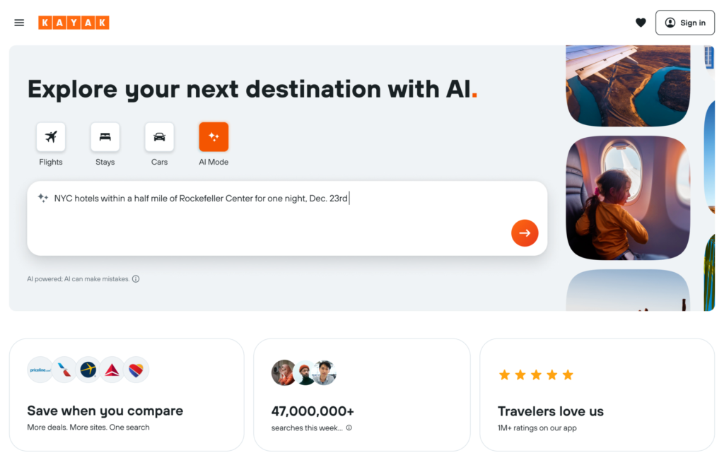 ענקית התיירות Kayak השיקה מצב חדש שנקרא AI Mode, והוא שואף לעצב את האופן שבו לקוחות רוכשים מוצרי תיירות. אם במודל המסורתי של אתרי התיירות, הלקוח נדרש להזין אינספור שדות ולחפש טיסות, מלונות והשכרות רכב בנפרד, הרי שכיום בעזרת כלים מבוססי AI, החוויה הזו הופכת להיות פשוטה ונגישה יותר. נראה שהענף עובר ממנועי חיפוש שלא באמת שמים את קלות השימוש של הלקוח בלב התהליך, עכשיו פשוט מדברים עם האתר בשפה רגילה — ובעזרת טכנולוגיות AI הוא ״מבין״ את הבקשה של הלקוח ואמור לדעת להציג תוצאות בהתאם.