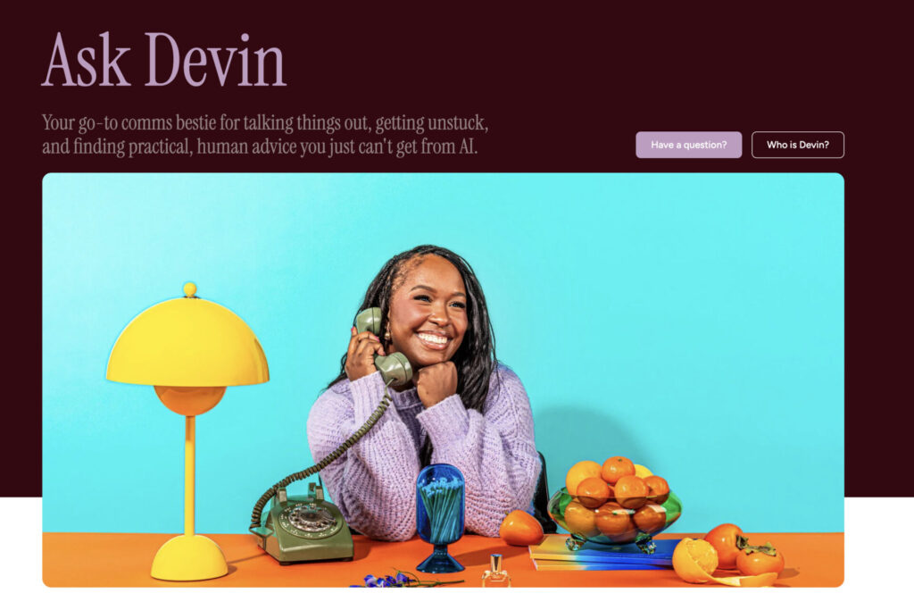 המהלך של הקמת האתר Ask Devin הוא דוגמה חדה לאיך חברה בוחרת ללכת נגד הזרם דווקא ברגע שבו כולם רצים לאוטומציה. במקום להפעיל בוט מבוסס בינה מלאכותית שנותן תשובות מהירות וגנריות, Workshop בנתה אתר פשוט שמעמיד במרכז אדם אמיתי עם קול, ניסיון ואחריות. האתר פונה לאנשי תקשורת פנים־ארגונית, מנהלי HR ומובילי תרבות ארגונית שמתמודדים עם שאלות רגישות שאין להן תשובה חד־משמעית, כאלה שדורשות שיקול דעת, הקשר ואמפתיה.