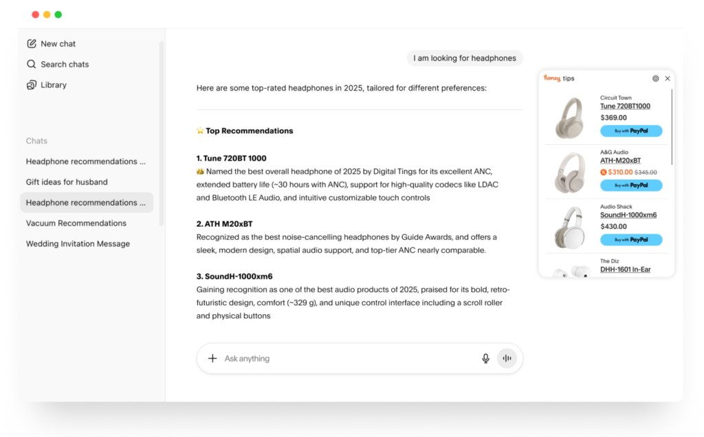 בעידן שבו מודלים של בינה מלאכותית משתלבים באופן הולך וגובר עם צריכה אונליין, PayPal מכריזה על מהלך אסטרטגי שמטרתו למזג בין פעולת החיפוש האינטליגנטית לרכישה ישירה: הרחבת פיצ’רים ב־Honey – תוסף דפדפן שמטרתו להציע קופונים, הצעות והנחות – כך שיאפשר אינטגרציה עם צ’אטבוטים כמו ChatGPT ורבים אחרים, במטרה להפוך חוויית קניות שיתופית, חכמה ושקופה יותר.