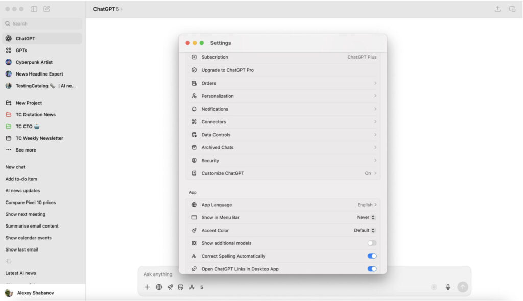מצב דיבור מובנה (Voice Mode): מצב הדיבור יעבור להשתלב ישירות בחלון הראשי של האפליקציה, במקום להיפתח בחלון נפרד. הדבר מאפשר חוויה רציפה וטבעית יותר של שיחה, כתיבה וצפייה, ומחזק את תפקידו של ChatGPT ככלי מולטימדיה.